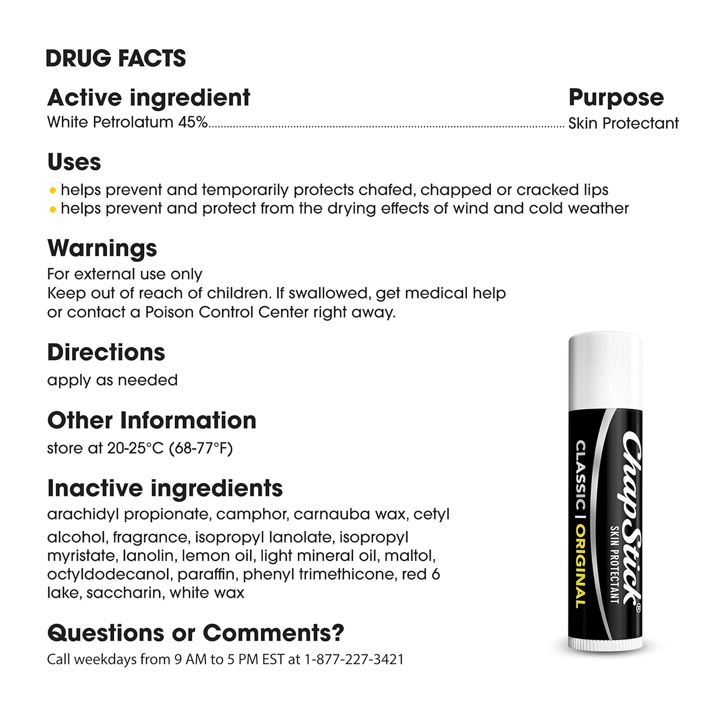 ChapStick Classic Original Lip Balm Tubes, Lip Care - 0.15 Oz Pack of 3
